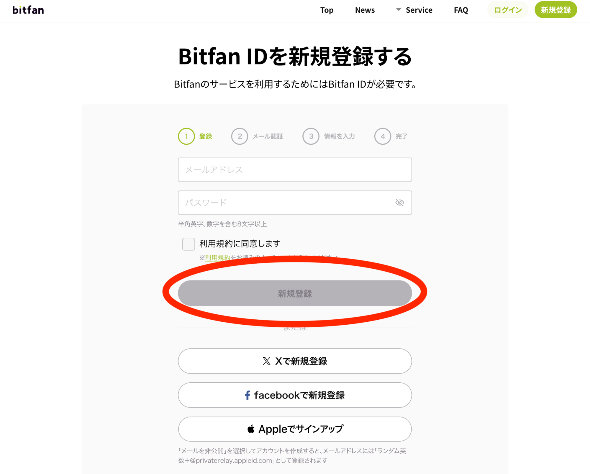 ① Bitfan ID(無料)を取得します