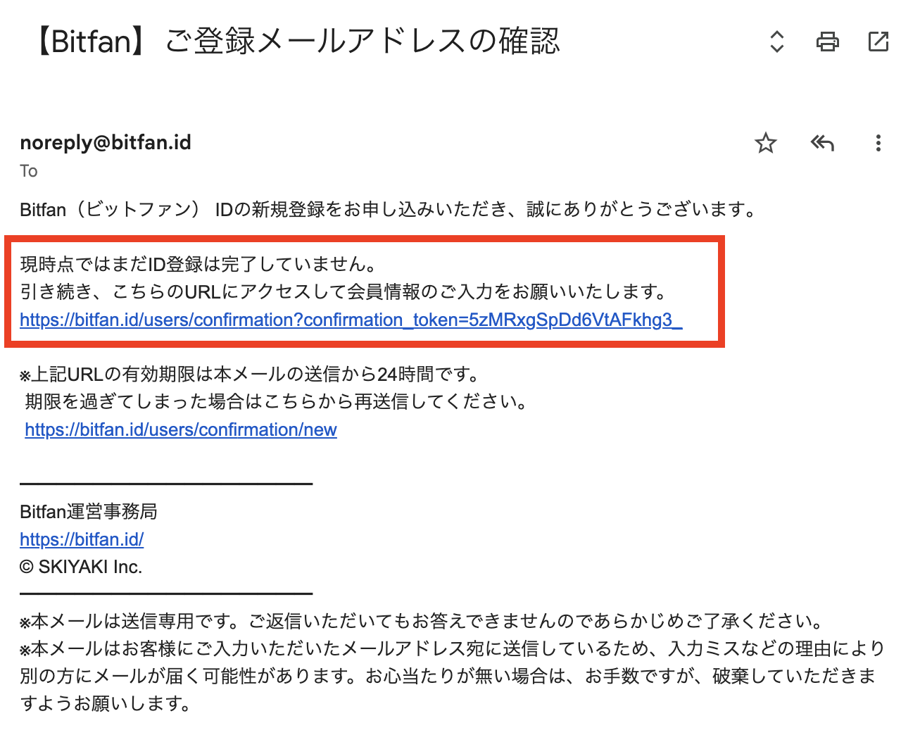 ご登録のメールアドレス宛に届いた確認メール内のURLをクリックしてください。